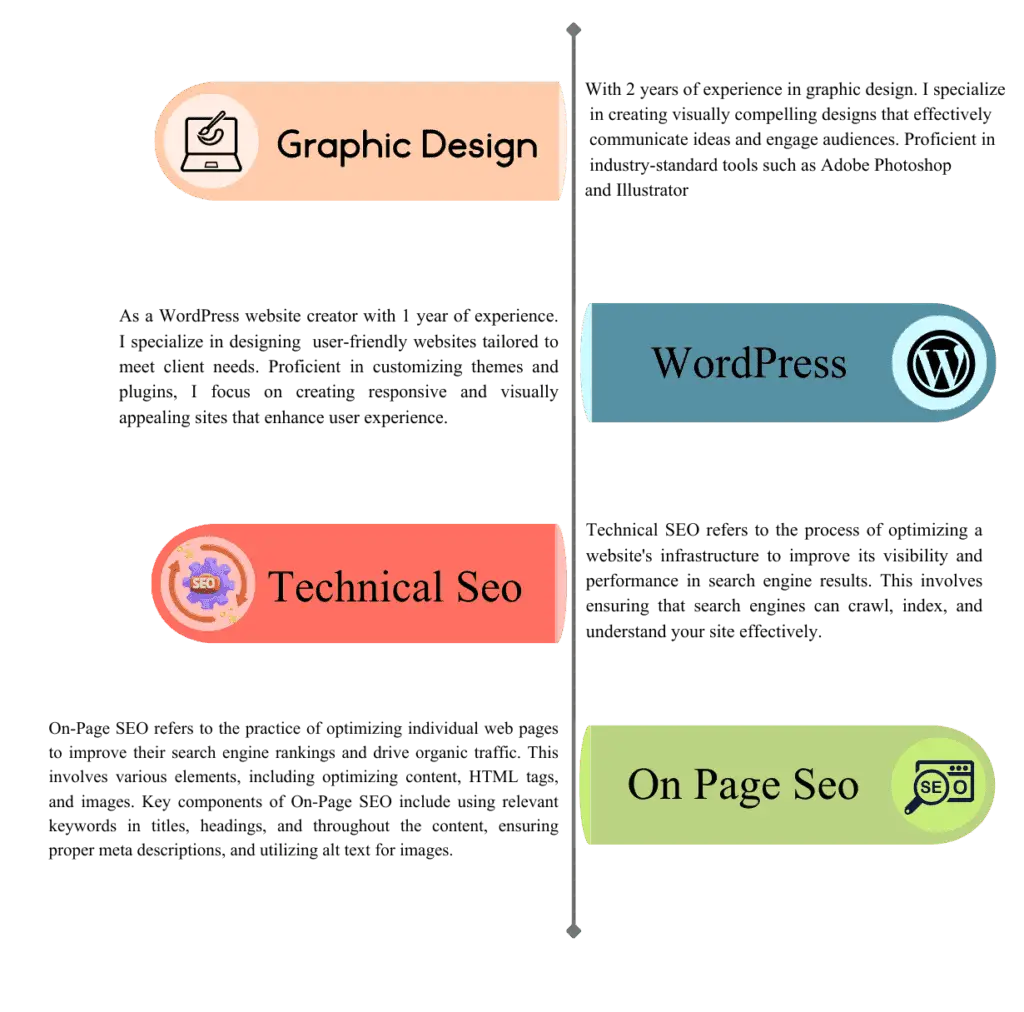 In today’s digital world if we have a website for our businesses then we can establish a strong online presence to increase the outcome of our business. My services focus on creating best WordPress sites that not only reflect your brands or business identity but also enhance user experience. We understand that an attractive website is just the beginning; that’s why I integrate technical and on page Seo strategies to ensure that your site ranks well in search engine results. My approach includes thorough keyword research, optimizing meta tags, and improving site speed, all of which contribute to better visibility and increased organic traffic. I believe that every business deserves a website that not only looks great but also performs well in search engine. By combining my skill in WordPress and advanced SEO.I help you attract more visitors and convert them into loyal customers. Our commitment to client satisfaction means we work closely with you throughout the process, ensuring that your vision reflect in your website. Whether you’re a small business or a larger enterprise. My custom solutions are designed to meet your unique needs. Let me help you take your online presence to the next level with a stunning WordPress website and effective SEO services that drive results and will help you reach your business goals.